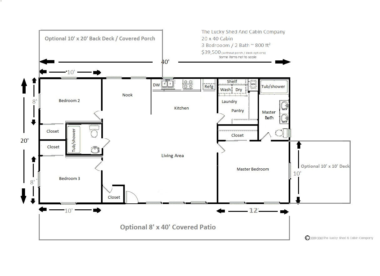 * Total length includes 8'x16' porch on 16 wide cabins and 8'x20' porch on 20' wide cabins